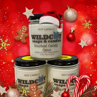 At Wildcat Soaps & Candles, we craft each candle carefully, using only the finest natural ingredients. Our Crushed Candy Cane candle is no exception, promising a clean, long-lasting burn that brings the holiday magic to life in your space.