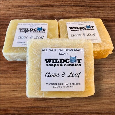 Immerse yourself in the rich, earthy aroma of Clove & Leaf Soap from Wildcat Soaps & Candles. This exquisitely handcrafted soap combines the warm, spicy scent of clove with the fresh, green notes of leaves, offering a truly unique bathing experience.